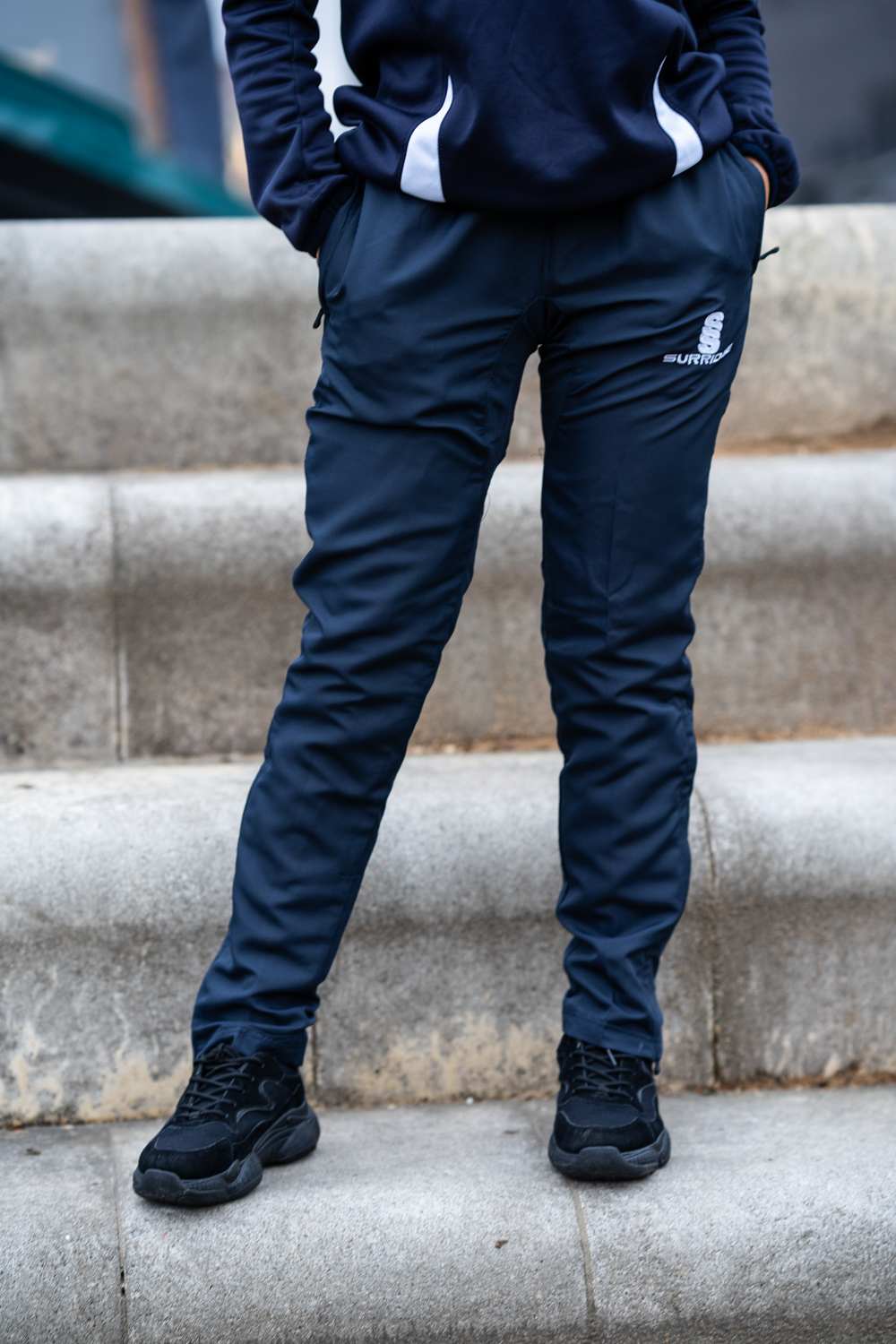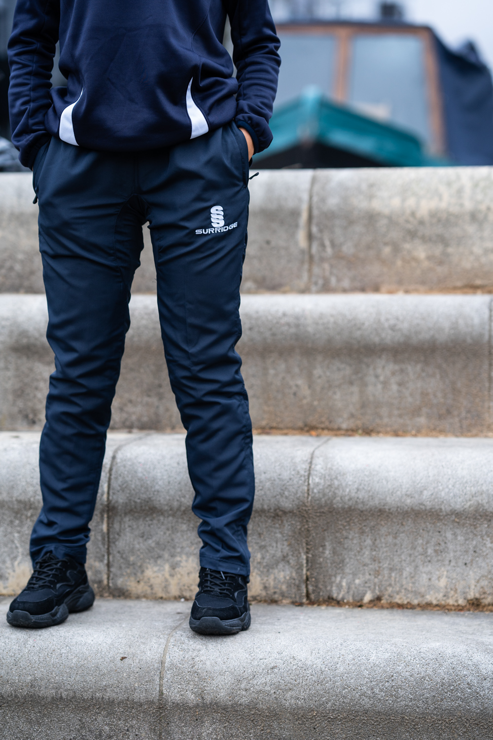 The Blade Ripstop Pants are made with a matte texture Ripstop-Polyester blend, with mesh upper lining and Nylon Tafeta lower lining. The Lycra gusset adds flexibility, comfort and extra strength. It comes with an inner waist draw cord, zipped pockets and a 12" side seam lower zip at hem. They are designed for a modern slimmer leg fit from knee downwards, with a slightly tapered leg. To finish, an embroidered SS Surridge logo is located on the left thigh.